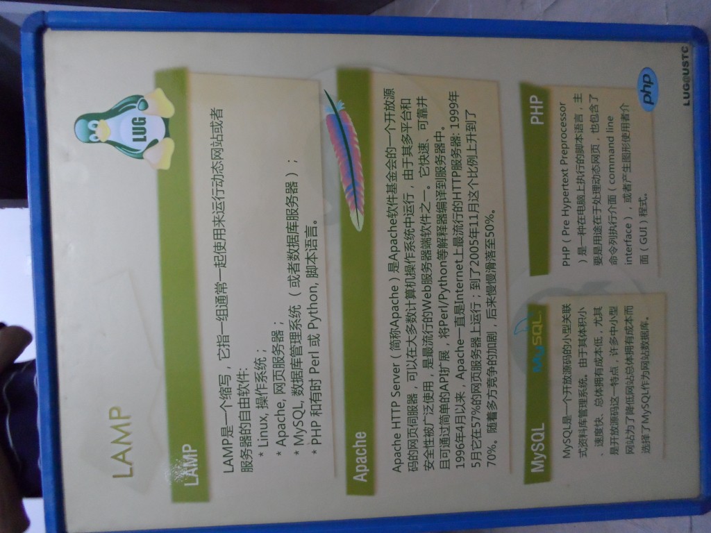 USTC LUG was officially established in 2003. It is the only organization in universities in Anhui Province that promotes the culture of free software communities and propagates the value of free software. It is also one of the best Linux/free software communities in mainland China’s universities.