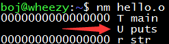 The nm command can conveniently view the symbols (functions, variables) in the target file, where U represents undefined.