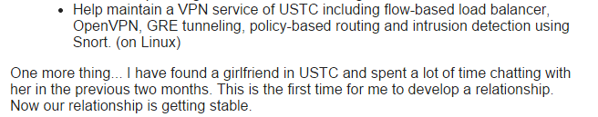 My second change, I believe many people have already guessed. On the afternoon of November 14, I mentioned for the first time in an email to my boss that I had found a girlfriend. It is said that when Larry, a USTC alumnus in the group, saw this email, he was so excited that he slapped the table.